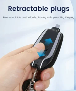 - 1. 1500 Mah battery capacity, can be a good solution for mobile phones, headphones, and other electronic equipment with power shortage problems so that you do not have to worry about running out of power at a critical moment.2. The retractable interface protects the circuitry on the interface from damage and avoids the possibility of being scratched by the interface metal in our market life.3. The power bank is just the size of a car key. It doesn’t look bulky or awkward when it hangs with our keys, and you can take it anywhere as a key chain.4.The shell of the power bank is made of high-quality ABS material, anti-collision, anti-fall, wear resistant, not easy to break and damage.5.Mini charger keychain is compatible with most cellphones, tablets, battery packs and any USB electronic device. You will never be stranded without power again.